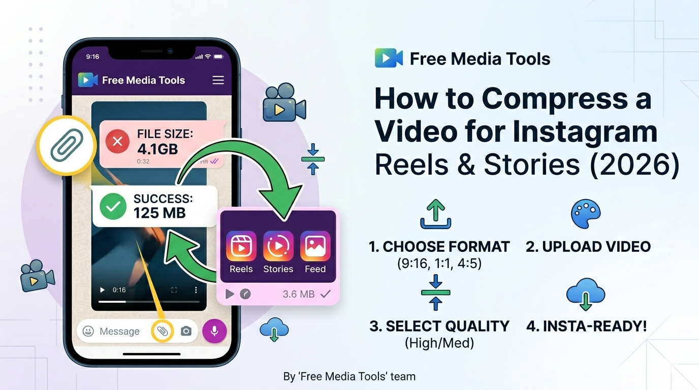 Learn how to compress videos for Instagram Reels, Stories, and Feed posts without losing quality. Free online tool, no app needed.