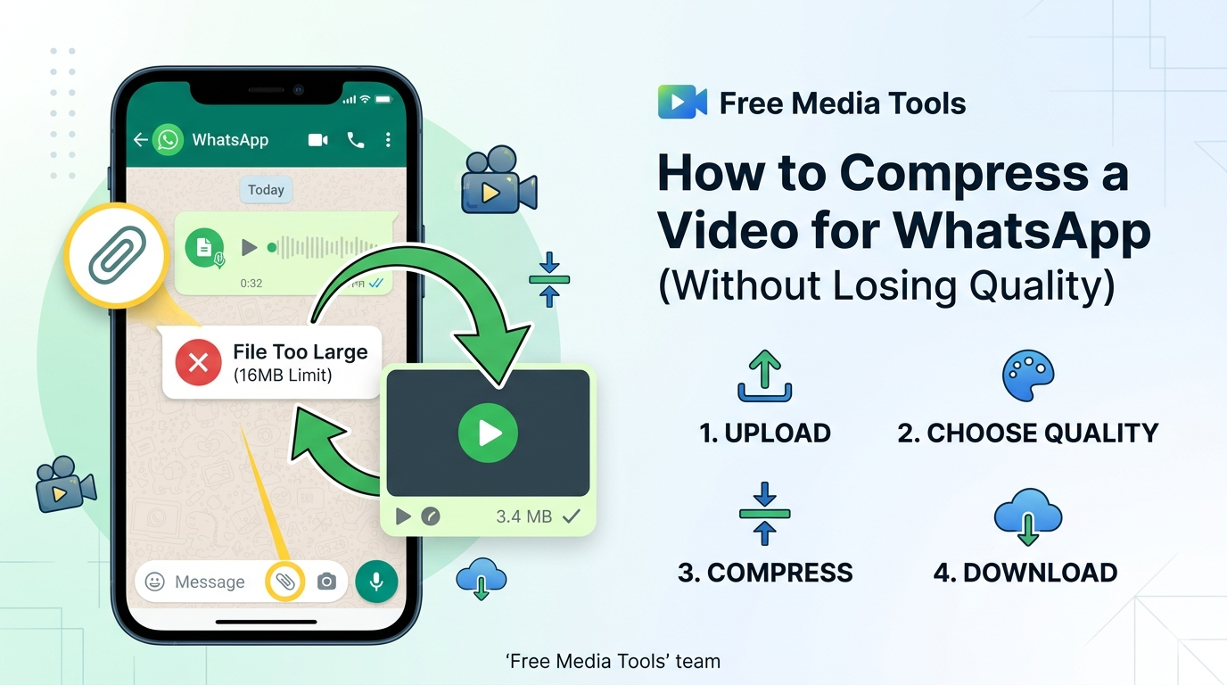 WhatsApp has a 16MB video limit. Learn how to compress any video for WhatsApp without losing quality using our free online tool.