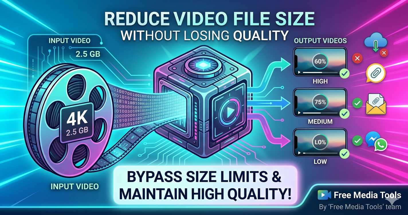Learn 4 proven methods to reduce video file size while maintaining quality. Free online tool, no software installation required.