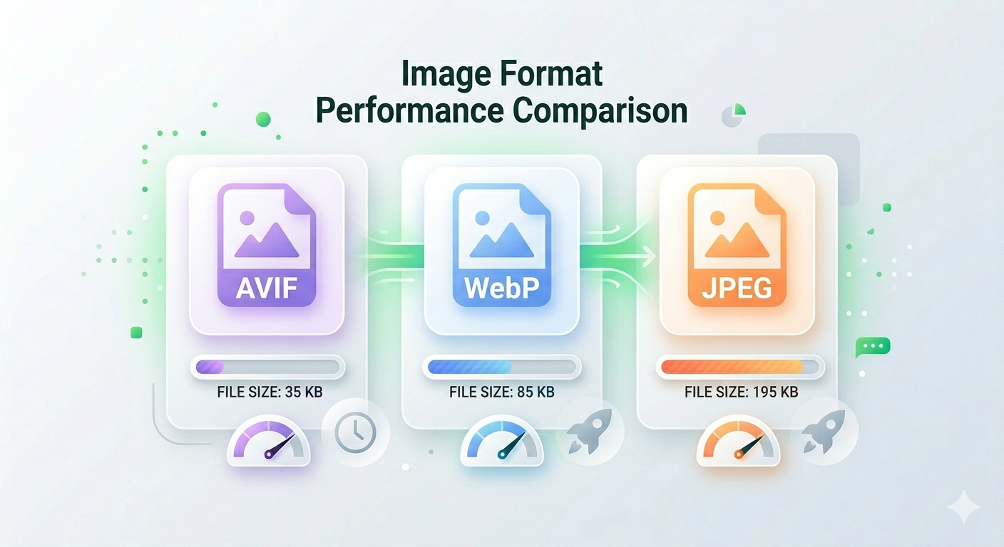 Choosing the right image format can make your website 50-70% faster. AVIF, WebP, and JPEG each have strengths and weaknesses. AVIF offers the smallest file sizes but limited browser support. WebP balances size and compatibility. JPEG works everywhere but creates larger files. Here's exactly which format to use for your website in 2026.