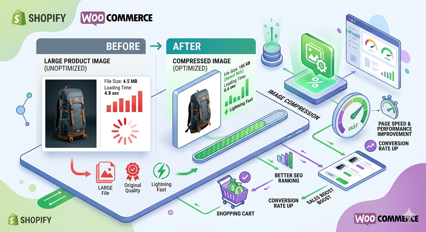 Slow-loading product images kill e-commerce sales. Studies show 53% of mobile users abandon sites that take over 3 seconds to load. If your Shopify or WooCommerce store has unoptimized images, you're losing customers and revenue. Here's how to compress product images properly and speed up your store by 50% or more.