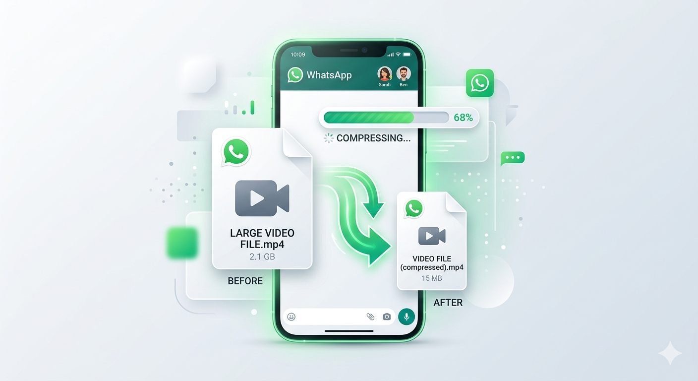 The problem: WhatsApp's automatic compression is aggressive and produces poor quality. Compressing videos yourself before sending gives you control over the quality-size balance.