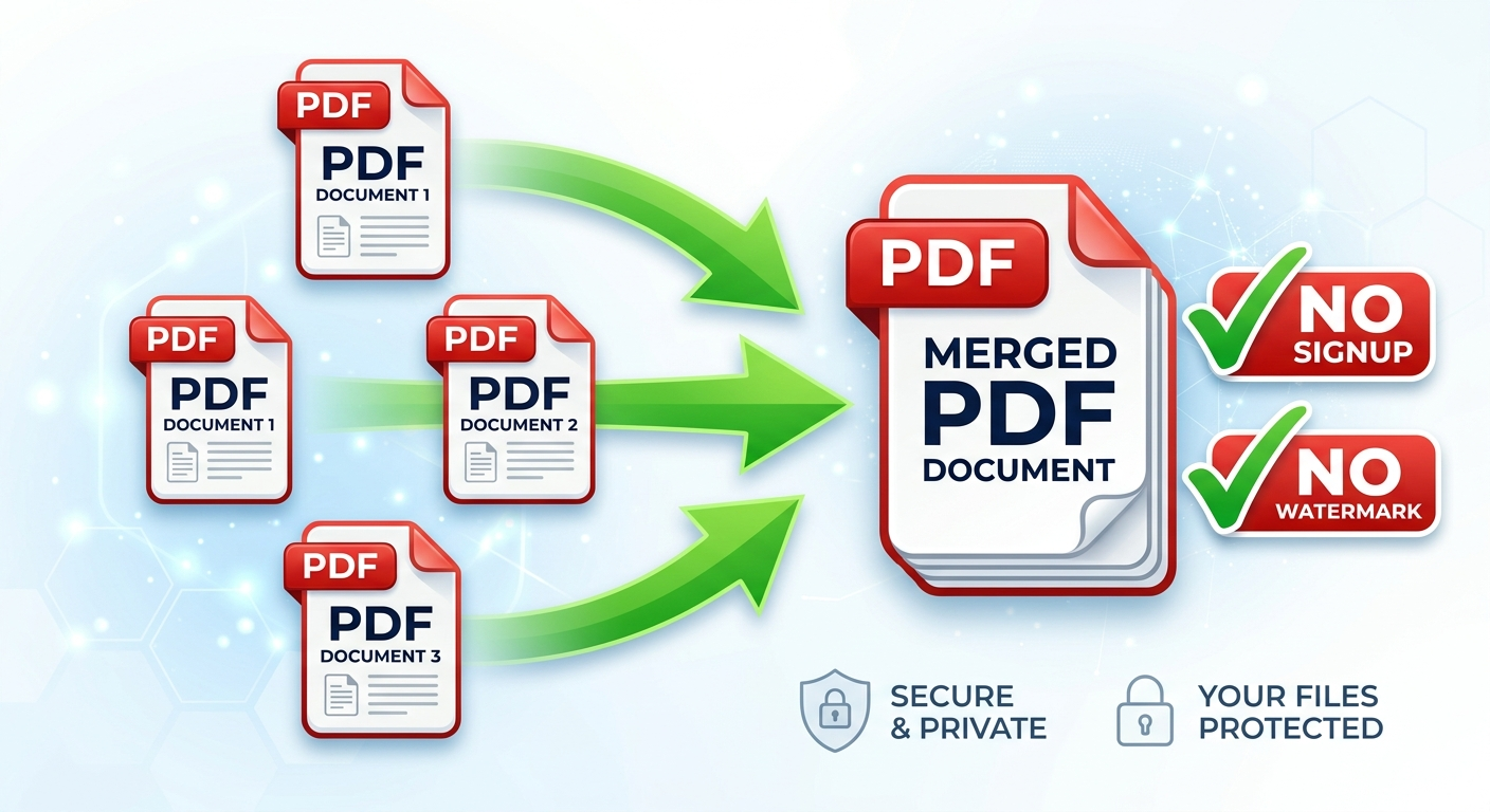 Tired of PDF tools that require signup, add watermarks, or limit free uses? Most "free" PDF mergers have hidden catches. Here's how to merge PDF files completely free, with no registration, no watermarks, and unlimited use — plus why privacy matters when combining sensitive documents.