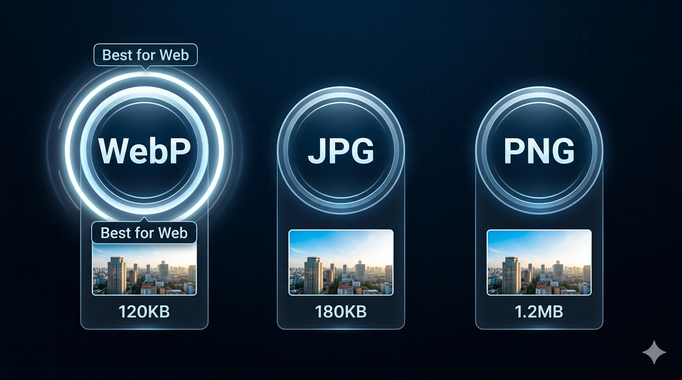 Choosing the right image format affects website speed, storage costs, and image quality. WebP, JPG, and PNG each have strengths and weaknesses. Using the wrong format means larger files, slower loading, and wasted bandwidth.